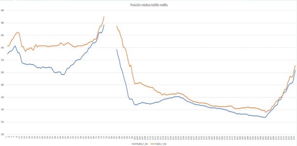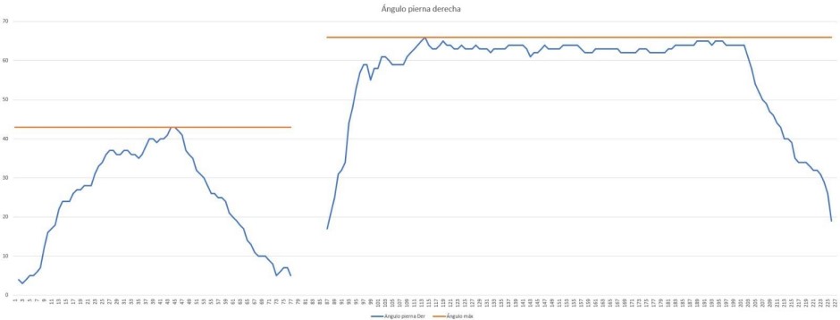 La siguiente imagen es una gráfica que nuestro software puede sacar en tiempo real o sobre un vídeo grabado con anterioridad. Te va a devolver el mismo vídeo analizado, un CSV y una hoja Excel con gráficas.